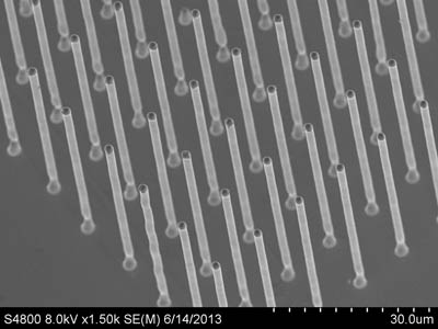 为了方便实现材料和器件在微纳尺寸下的三维合成,进而实现其高度集成化和多功能化,5630福彩网许高杰研究团队,与美国佐治亚理工学院俞敏峰教授紧密合作,成功研制出“直写式”三维微纳结构制备系统,实现了金属材料微米/纳米级别的单线和阵列的快速生长。目前,微/纳米线生长速度可达1.3μm/s,比典型的薄膜沉积速度快几个数量级。
