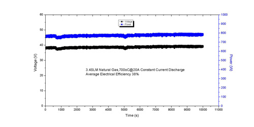 图1:1kW级SOFC发电系统20A恒流放电曲线图