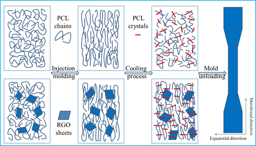 众所周知,石墨烯由sp2杂化的碳原子紧密排列而成,其中碳-碳键长约为0.142nm,相邻两个六圆环的面心距为0.246nm。石墨烯片层表面与聚己内酯(PCL)片晶间存在晶格匹配关系,可诱导PCL分子链在其表面附生结晶,从而产生“物理铆合”作用,显著提高二者之间的界面粘结性(Ind. Eng. Chem. Res.2013. 52, 15824-8)。研究人员继而研究了注塑过程中石墨烯对PCL分子取向与结晶的影响,发现在附生结晶和空间限制双重作用下PCL分子链的松弛抑制现象(Compos. Sci. Technol.http://dx.doi.org/10.1016/j.compscitech.2014.03.012),这为制备高各向异性高分子复合材料提供了基础。研究人员还通过静电吸附制备了UHMWPE/石墨烯抗静电复合材料,由于形成了石墨烯三维网络结构,所以具有较低的导电逾渗值(Compos. Sci. Technol.2013. 89, 180-5;中国发明专利申请号:201310317580.2)。以上研究得到国家自然科学基金(51273210;51273207;51003117)和宁波市重点科技创新团队(2009B21008)的支持,并作为研究基础申请获批宁波市石墨烯产业化应用开发专项1项(2013B6009)。