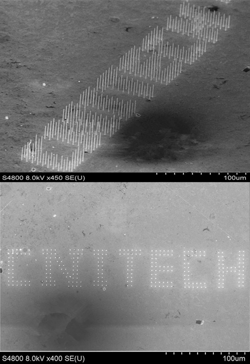 上图为微纳线组成的中科院宁波工业技术研究院(CNITECH)英文缩写的阵列图样