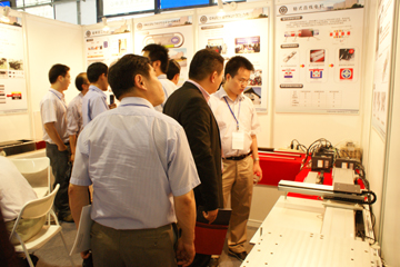 本次展会有诸如西门子、三菱、海德汉等众多国内外知名大企业参展,与部分公司展台乏人问津形成鲜明对比的是,联合实验室的展台显得格外热闹,前来参观、咨询、洽谈的业内人士络绎不绝。据不完全统计,先后有三百多名来自国内外半导体、电子、机床、测量、石油、船舶、纺织、教育、航空航天等行业的企事业单位相关负责人对轴式电机表达了浓厚的兴趣与需求意向。