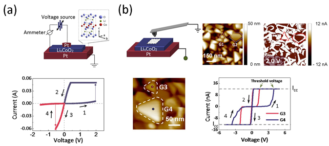 (a) Pt/LixCoO2/Pt三明治结构薄膜器件的阻变行为