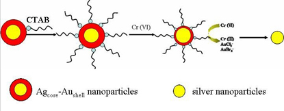 铬(Ⅵ)氧化刻蚀银核金壳纳米颗粒的机理示意图