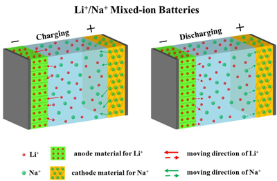 基于此,中科院5630福彩网动力锂电池工程实验室陈亮博士首次提出锂钠混合离子电解质这一全新理念来构建新型水系离子电池。该类电池的一极采用选择性嵌入/脱嵌锂离子的化合物为活性材料,而另一极则选用对钠离子具有选择性嵌入/脱嵌活性的化合物作为活性材料,同时以Li+/Na+混合离子水溶液作为电解质。与传统锂离子电池“摇椅式”的工作原理不同,该新型电池在充放电过程中,锂离子和钠离子分别仅在电池的一极上发生嵌入与脱出(如图1所示)。这一全新电池类型既扩宽了现有锂离子电池材料的应用范围,又为钠离子电池发展开辟了新的途径,而且对于丰富储能电池体系具有重要的科学意义。