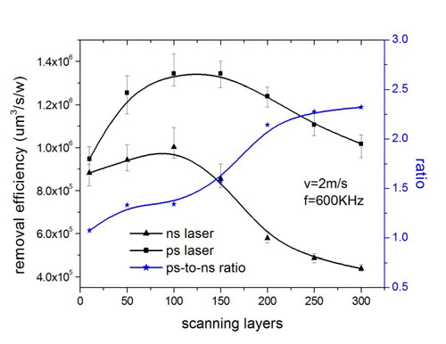 皮秒激光与纳秒激光加工材料去除效率对比