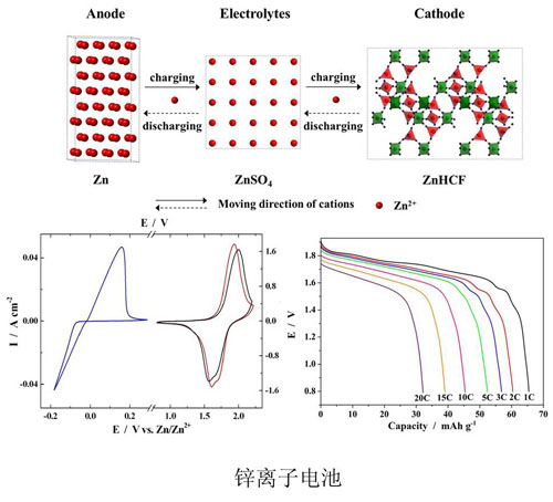 然而,低工作电压是目前制约新型水系离子电池发展的主要瓶颈之一。针对这一问题,5630福彩网动力锂电池工程实验室的科研人员在新型高电压水系离子电池探索方面取得了系列进展。该实验室继2013年首次提出锂钠混合离子电解质理念来构建新型水系离子电池 (Sci. Rep., 2013, 3,1946),又扩展式提出了锂钾和钠钾混合离子电解质的新理念来构建水系离子电池。新电池的工作电压为1.45 V,比能量达43 Wh Kg-1,相关研究工作发表在ChemSusChem(2014, 7(8), 2295-2302), 并申请了中国发明专利 (201410108023.4)。在此基础上,实验室的科研人员还发现锌铁氰化络合物可作为锌离子电池正极材料,以金属锌为负极和锌铁氰化络合物为正极构建出一种新型高电压水系锌离子电池。其工作电压达到1.7 V,为目前报道的现有水系离子电池的最高值之一。该研究结果现以Communication形式在线发表在Adv. Energy Mater.杂志(DOI:10.1002/aenm.201400930), 并申请了中国发明专利 (201410228197.4)。