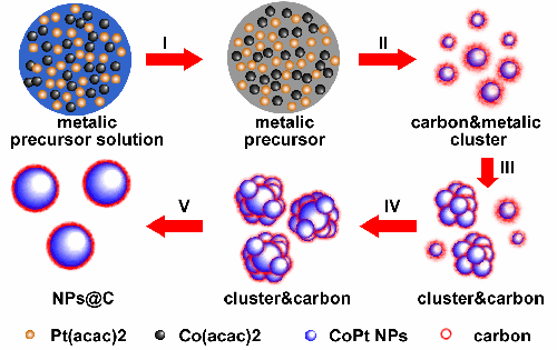 固相合成法纳米颗粒的生长过程示意图