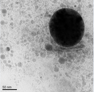 未添加硫醚单体的水凝胶中的银粒子 (左)以及添加5 mol%硫醚单体的水凝胶中的银纳米粒子 (右)的TEM图片