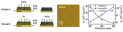 图一:采用不同生长过程制备的具有周期性褶皱结构的磁性薄膜