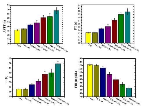 图2 氢键结合水蛭素聚乳酸微孔膜的凝血四项性能