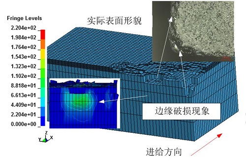 图1 仿真结果与铣削试验表面形貌特征对应区域应力集中现象