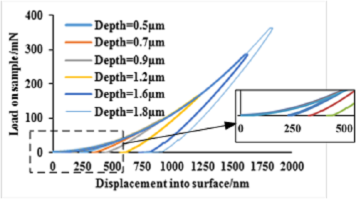 图2 石英玻璃材料纳米压痕载荷位移曲线