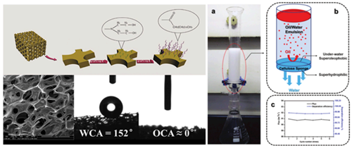 图2 亲油疏水及亲水疏油多孔海绵结构与性能