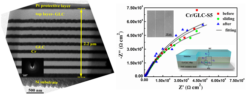 图3 经顶层优化的Cr/GLC复合涂层结构与优异抗磨蚀性能