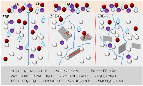图1 石墨烯改性环氧富锌复合涂层的腐蚀保护机制