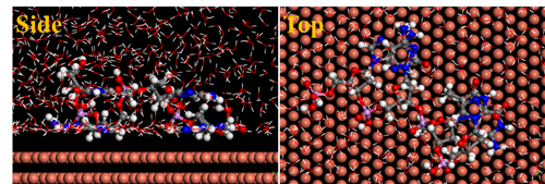 近日,5630福彩网王立平研究员团队博士后强玉杰通过系统的电化学测试、表面结构表征、吸附等温模型以及分子动力学模拟等方法系统研究了DNA分子对铜在硫酸溶液中的缓蚀性能及机理。实验结果表明,DNA可以作为铜在硫酸介质中的高效缓蚀剂,缓蚀效率可达90%以上,并在温度升高以后依旧可保持优异的缓蚀性能。且该缓蚀剂属于阴极型缓蚀剂,会在铜表面生成一层致密的单分子膜,符合langmuir吸附等温模型。DNA缓蚀膜在铜表面具有活性阻滞效应,且为化学吸附为主的混合吸附模式。分子动力学模拟从分子层面上得出了DNA分子及其各组分在铜表面的稳定吸附构型及吸附强度,发现了腺嘌呤核苷酸在DNA缓蚀性能中所发挥的主导作用,从而为同类型缓蚀剂进一步的分子设计与应用提供了理论指导。相关研究结果发表在Applied Surface Science, 2019, 492, 228-238。