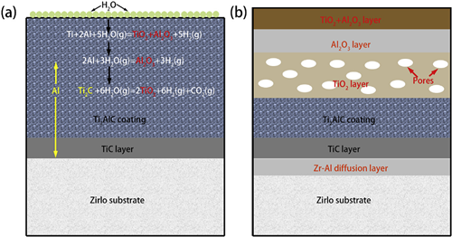 图3 锆合金表面Ti2AlC MAX涂层在水蒸气中的氧化机理示意图