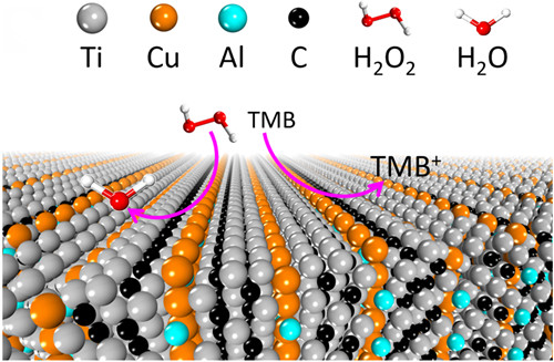 图2 晶格原子结构示意图显示Cu原子在MAX相中被MX层天然隔离并体现出良好的类酶催化活性