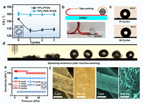 图3 SPRET对磨损、洗涤试验表现出稳定的疏液、传感性能