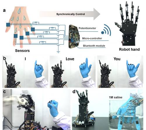 图4 SPRET在汗液/水环境下对机器人实现了精准控制