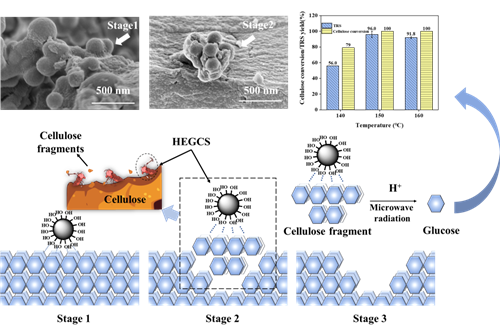 图3 碳基催化助剂通过打破纤维素颗粒的结构在水相、低酸、温和条件下实现高效水解成糖