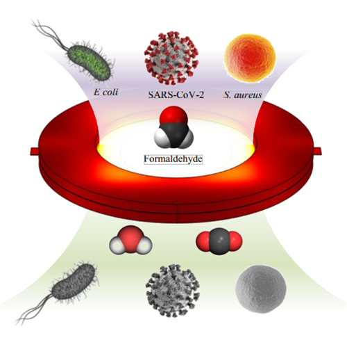 办公室、高铁车厢、包厢等密闭空间或公用场所的空气质量与人体健康息息相关。甲醛等室内空气污染物会降低人体免疫力、致病致癌,而新冠等病毒则借助气溶胶传播易引发聚集性感染。因此,开发多功能空气净化器件与装置迫在眉睫。