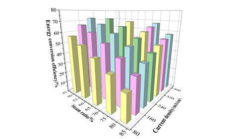 科研人员直接使用从宁波市近海取回的海水,采用鼓泡法,以氢气为载气携带海水挥发物,通入固体氧化物电解池在750℃下进行电解。该方法由于先将海水加热蒸发,海水中的绝大部分杂质不与电解槽接触,因而难以对电解槽造成破坏。由于高温下更好的热力学和动力学条件,高温电解过程的电压(约1.30V)远低于常温电解槽(2.0V左右)。即便将加热蒸发海水及加热升温所有原料的热量均考虑在内,且不考虑高温尾气的利用,该方法的能量转化效率亦可高达72.47%,具有良好的应用前景。