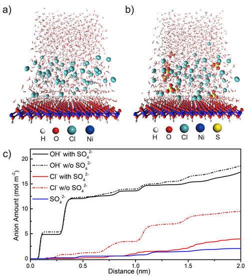 图2 电极表面吸附硫酸根离子对氯离子排斥作用的分子动力学模拟