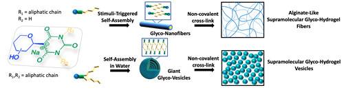 该工作所提出的两亲性糖基化衍生物合成新方法,能够调控所得糖基化巴比妥酸衍生物的多级超分子自组装凝胶化过程,获得具有纤维和囊泡堆叠的有序结构,为制备和应用具有有序多级自组装微结构的糖基化水凝胶提供了一种新的合成工具。