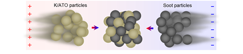 研究团队通过机理研究揭示电流可驱动催化剂晶格氧移动,促进晶格氧与碳烟的反应,从而提升活性结构催化碳烟燃烧活性。此外,研究团队还发现了导电催化剂颗粒与碳烟颗粒之间相对的电场力流化效应,即两种颗粒在电场库伦力作用下会产生逆向运动,该效应可增强催化剂和碳烟之间的接触。催化燃烧电气化方法突破了传统热催化的碳烟起燃温度限制,有望用于柴油车及油电混动车尾气后处理,即以车载电源为动力并将电气化策略集成到电子控制单元,实现碳烟颗粒物排放的实时控制。