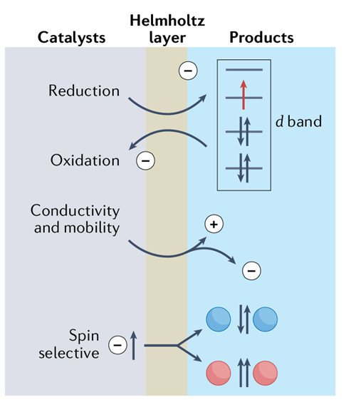 图1 电子的电荷与自旋属性和电化学反应的关联