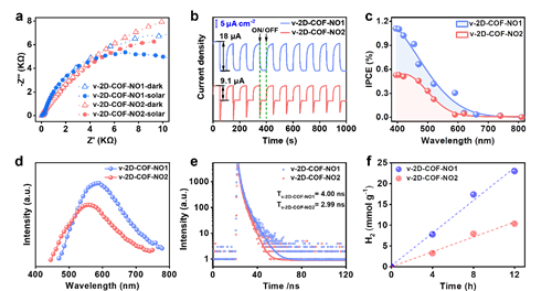 图3 v-2D-COFs光电性能及光催化制氢实验