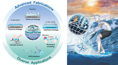 Janus薄膜由于具有不对称的结构和独特的物理或化学性质,在传感、驱动、能源管理和先进分离等方面表现出了巨大的应用潜力。其中,仿生柔性皮肤由于兼具灵敏感知、驱动和功能集成等特点,已经引起了人们广泛的研究兴趣。为实现这些特定的功能,需要选择合适的活性功能材料并以可控的方式形成不对称的结构。碳纳米材料由于具有优异的导电和导热性能、本征机械柔韧性、高化学和热稳定性、易于加工等优点,是一种极具应用前景的活性材料。碳纳米材料和功能聚合物以可控方式进行不对称结合可以促进高性能传感、驱动和集成器件的设计,从而推动智能软体机器人的发展。因此,迫切需要对碳基Janus薄膜的设计原则进行全面总结,并深入讨论表面/界面结构和性能之间的关系,以指导其在柔性智能设备中的应用。
