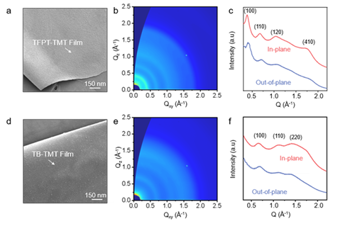 图2 sp2c-COF薄膜的分子结构及结构表征