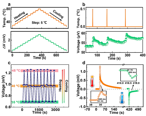 图3 双模传感器的温度感知性能