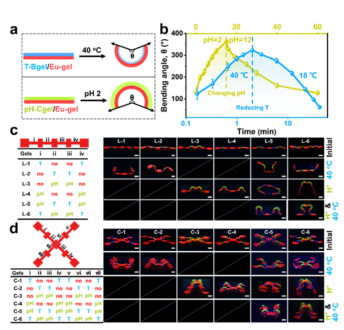 该研究利用仿生逐步由内向外生长技术赋予了已加工完成的水凝胶结构编辑特性,首次展示了一种利用可编程的多种驱动状态来传达不同信息的环境交互信息显示系统,有望在很大程度上丰富水凝胶驱动器的环境交互功能,为下一代智能驱动系统的发展铺平道路。