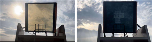 近期,该团队还利用现有商业化夹胶产线实现了20×20 cm2 WO3-NiO电致变色器件夹胶组装,获得更加均匀的贴合效果,器件的着色态透过率5%,褪色态透过率65%,调制幅度为60%,响应时间小于10min,进一步证明利用产线现有设备制备大面积器件是可行的(见图2)。