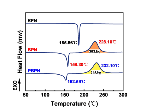 图2 单体RPN、BPN和PBPN的DSC曲线图