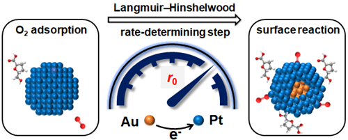 这项研究设计合成了一种具有核壳结构的负载型催化剂Au1@Pt8/CeO2,可实现温和反应条件下(100 ℃、3 h、0.1MPa O2)HMF加氢衍生物四氢呋喃-2,5-二甲醇(THFDM)到THFDCA的无碱高效氧化,产率>91%。Au1@Pt8/CeO2催化剂在保持表面几何形状的同时,可促进电子从Au核转移到表面Pt壳,克服了电子和几何效应交织的复杂性。此外,通过动力学分析和Langmuir−Hinshelwood模型,揭示了催化剂结构特性协调底物和氧气吸附强度的能力,速度控制步骤(RDS)从对比催化剂Pt/CeO2的氧气吸附转变为Au1@Pt8/CeO2的表面反应。DFT计算表明Au1@Pt8/CeO2不仅增强了对底物的吸附能力,而且还促进了H2O协助O2活化为OH*,从而推动了-CH2OH的去质子化。这为醇类氧化和生物质转化中催化剂的理性设计提供了重要启示。