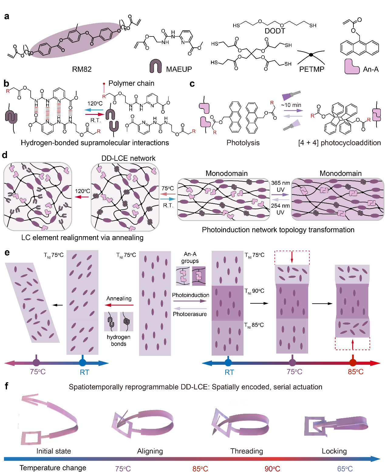 图1 光诱导双动态键液晶弹性体(DD-LCE)致动器的快速可逆时空编程设计