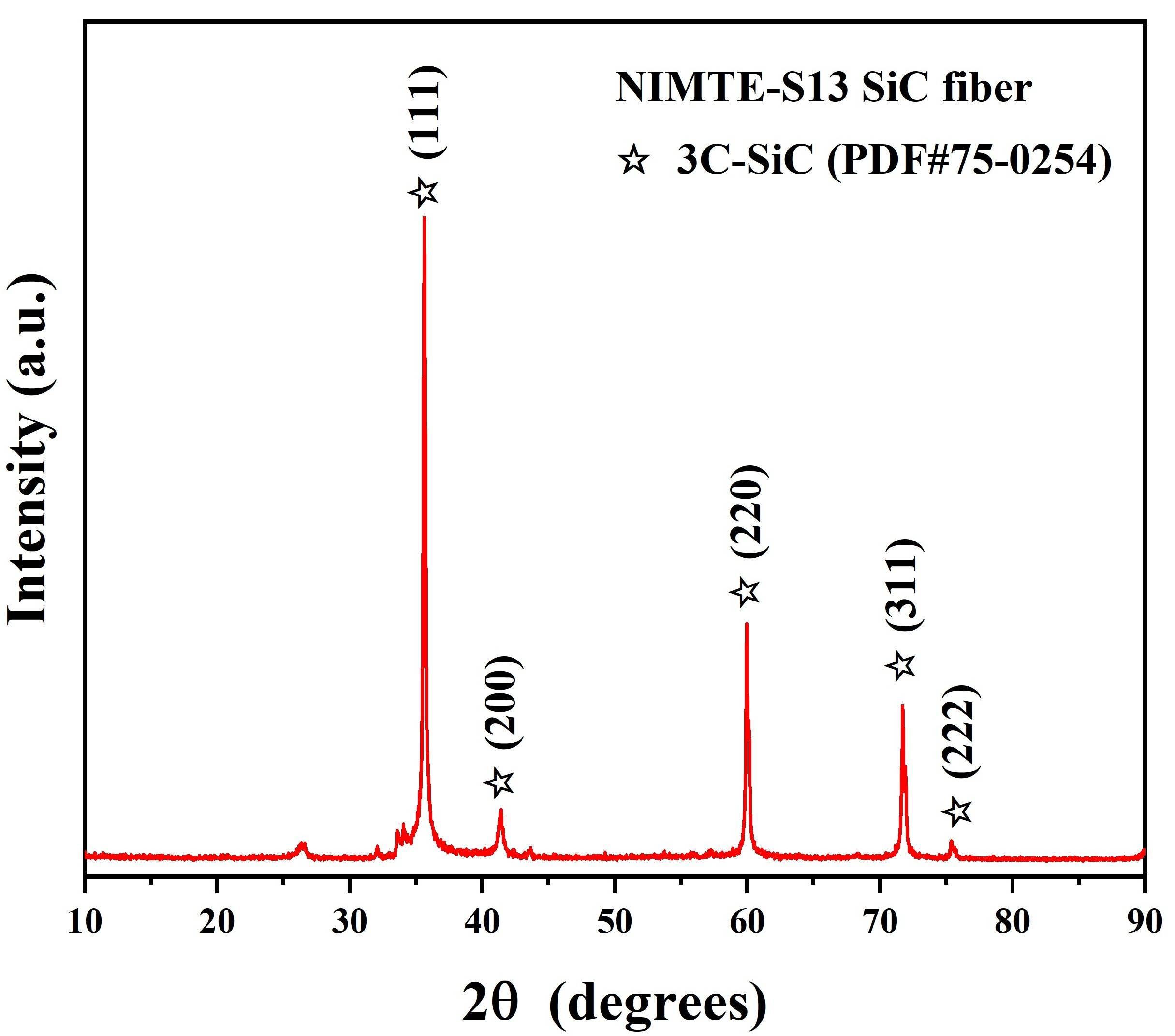 图2 高结晶连续碳化硅纤维X射线衍射图谱