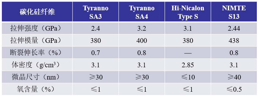 表1 NIMTE-S13高结晶连续碳化硅纤维与国外主流产品的性能对比