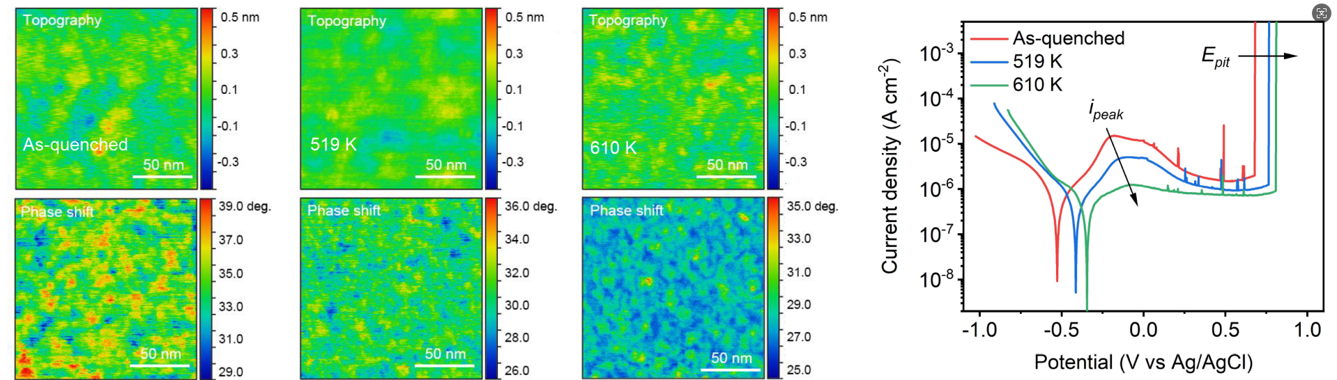 图1. 退火弛豫引起的结构均质化,提高钴基非晶软磁合金的点蚀抗性