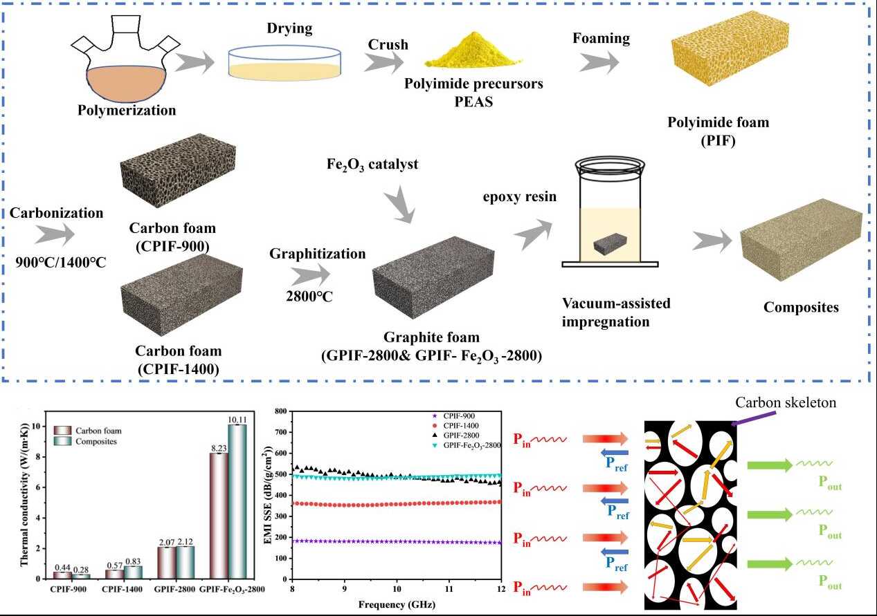 聚酰亚胺基泡沫碳复合材料的导热/电磁屏蔽一体化设计